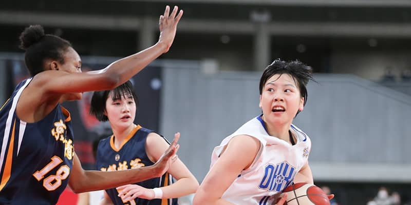そして迎えた後半、井上コーチの指示を受けた朝比奈が留学生を相手に積極的にドライブを仕掛けて得点。接戦から抜け出すキッカケを作った。