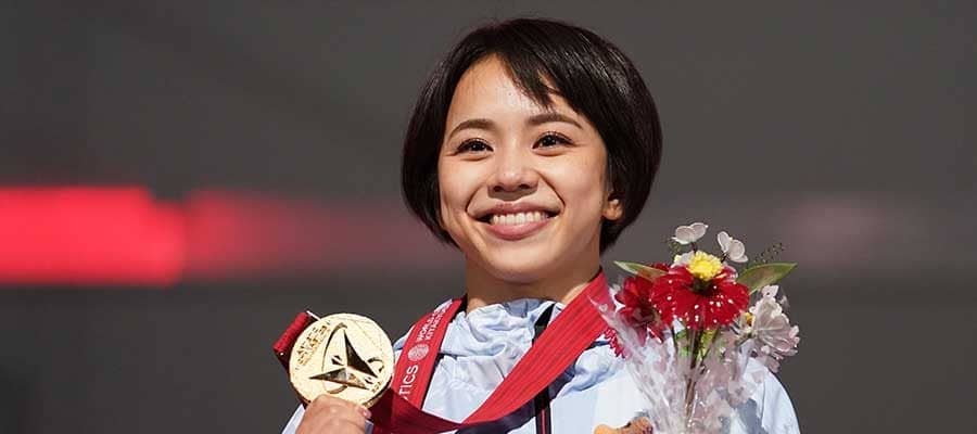 昨年行われた世界選手権・種目別床運動決勝で金メダルを獲得した村上茉愛さん【写真:Getty Images】