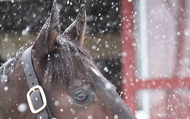 有馬記念を最後に引退したキセキが7日、種牡馬生活を送る北海道日高のブリーダーズ・スタリオン・ステーションに到着した。この日はあいにくの雪模様だったが、朝から多くの報道陣が駆けつけて関心の高さをうかがわせた。