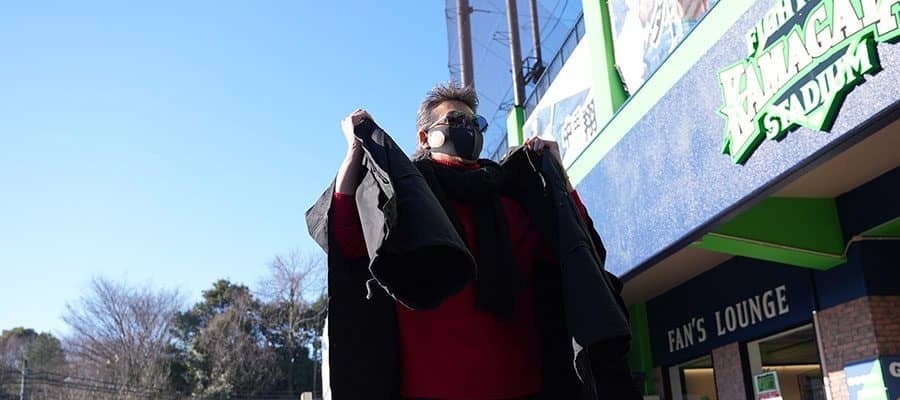 【写真】黒マント&赤のタートルネックで球場入り! 新人合同自主トレを視察に訪れた新庄監督の“ド派手衣装”