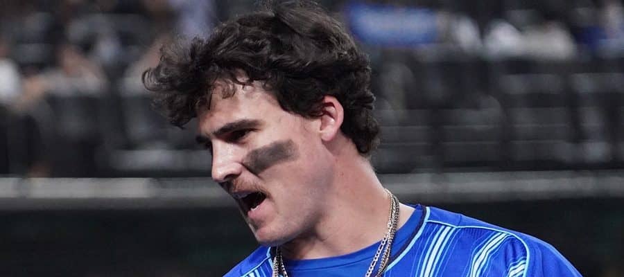 タンクトップにショートパンツ姿で威圧感のあるフォームから華麗なセンター返し DeNAのタイラー・オースティン外野手の妻で…