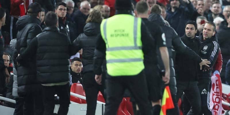 前回対戦時は冨安を巡ってバトル!クロップ&アルテタの“気まずそう”な抱擁シーンをファンは見逃さず「やらされてる感すごい」