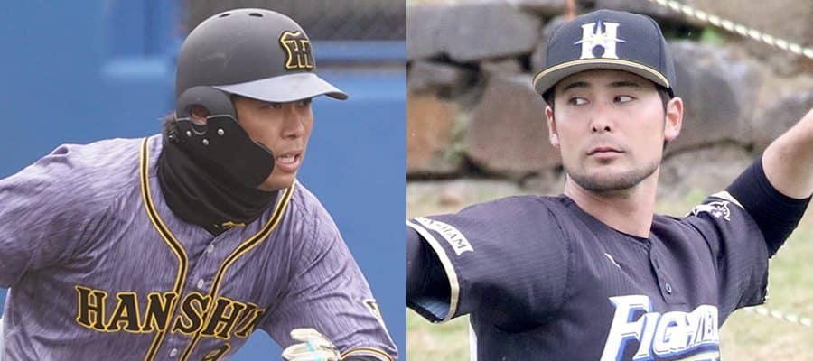阪神・高山俊(左)と日本ハム・上原健太【写真:荒川祐史、石川加奈子】