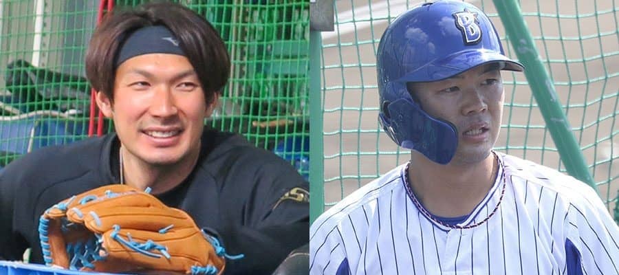 DeNA・大田泰示(左)と楠本泰史【写真:小谷真弥】