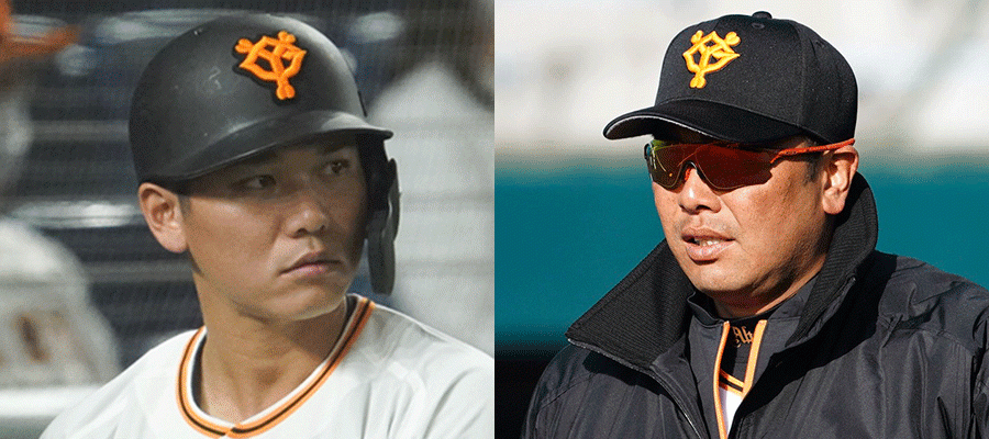 巨人・坂本勇人(左)、阿部慎之助現1軍作戦兼ディフェンスチーフコーチ【写真:荒川祐史】