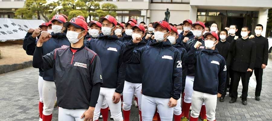 「承知いたしました。ありがたくお受けいたします」。15時19分、電話で朗報を受けた国清英明学校長は、グラウンドに出て2年生27人、1年生32人、計59人のナインに選出を報告した。上田太陽主将は「新型コロナウィルスの感染状況が悪化する中、引き続き感染対策を対策をしながら準備していきます」と抱負を述べた。