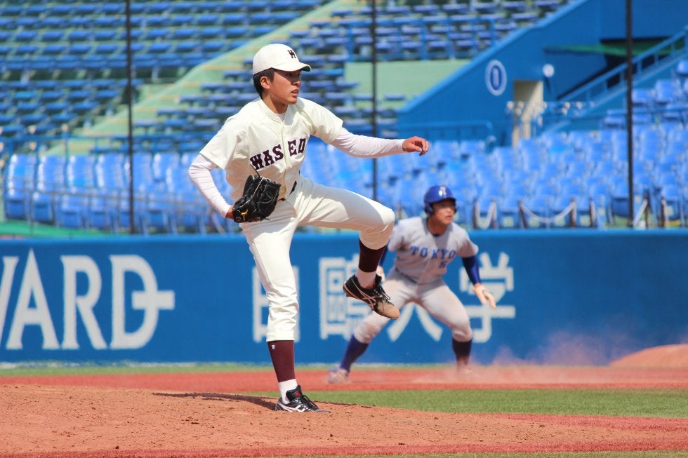 ここまで2カードずつを終え、2勝2敗・勝ち点1で4位の早大と、4連敗で6位の東大との1回戦。東大の先発はドラフト注目の最速150㌔・宮台(4年・湘南)。一方、早大の先発は昨年の甲子園、侍ジャパンU-18代表での活躍も記憶に新しい早川(1年・木更津総合)。左腕同士による興味深い対決となった。