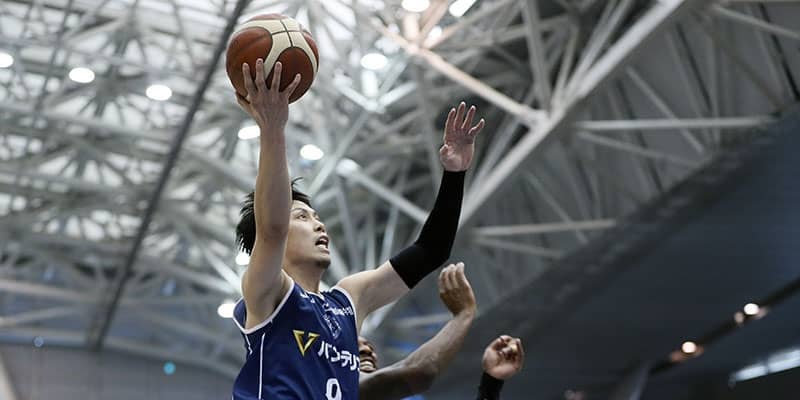 第2クォーターはスコアが伸び悩んだものの、3ポイントを2本沈めた須藤昂矢の6得点を含む計15得点。相手をわずか13得点に抑え、45-26で試合を折り返した。