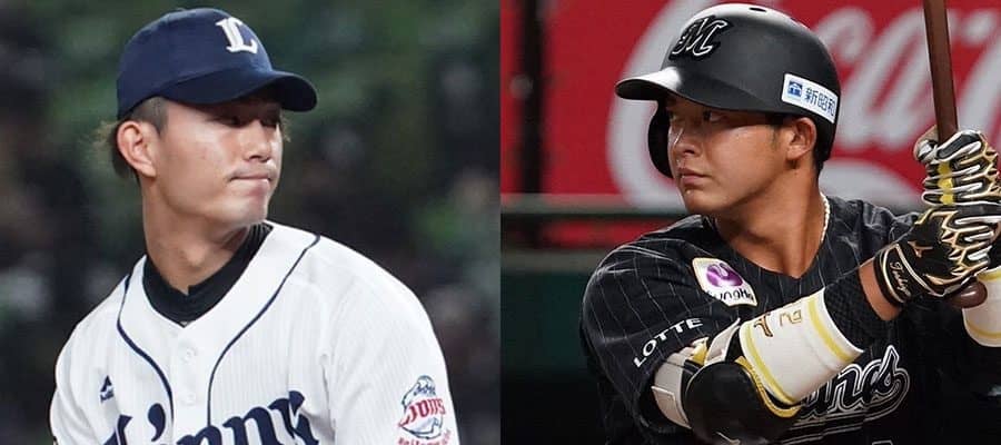 西武・今井達也(左)とロッテ・佐藤都志也【写真:荒川祐史】