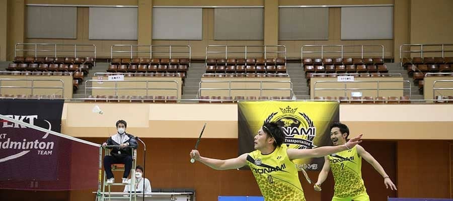 バドミントンのS/Jリーグに出場、東京五輪以来の公式戦で勝利 東京五輪のバドミントン男子ダブルスでベスト8に入った園田啓…