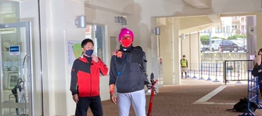 新庄剛志監督がキックボードで球場入り 臨時コーチ赤星氏に合わせ真っ赤なコーデ | 野球