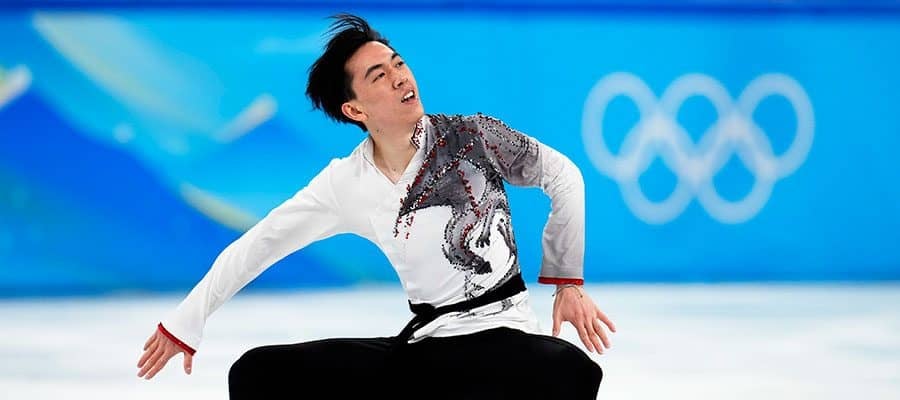 フィギュアスケート団体戦、男子フリーで演技をしていたビンセント・ジョウ【写真:AP】