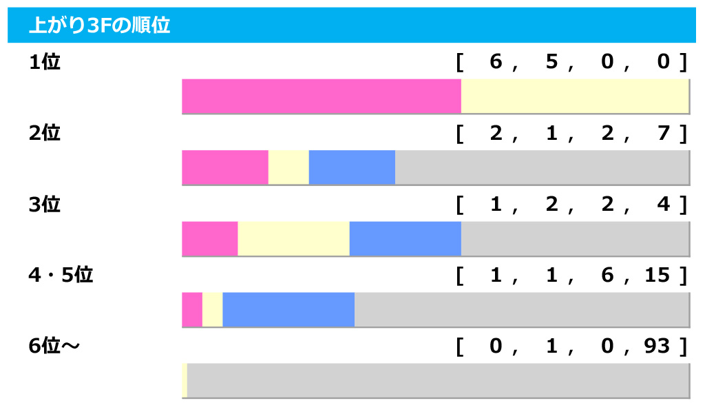 また、上がり3Fの順位ごとの成績は以下の通り。