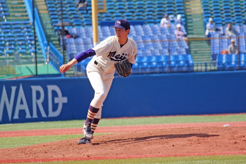 明大は代打攻勢で7回裏に一死満塁の反撃機をつかんだが、最後は併殺。連敗で今季はじめて勝ち点を落とした。