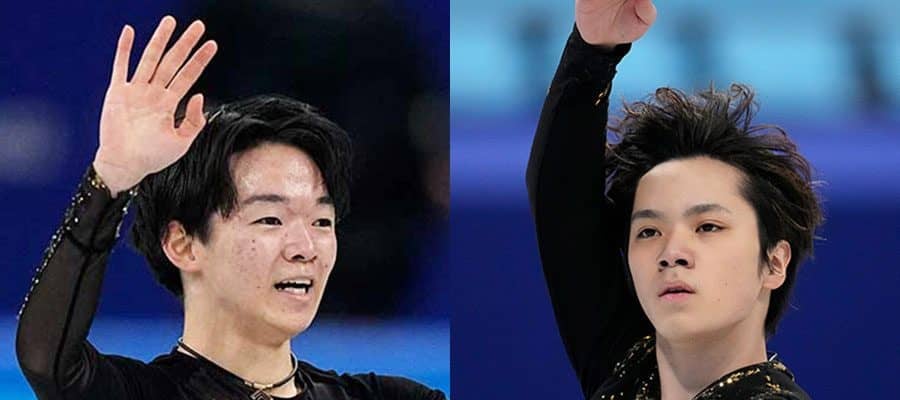 北京五輪のフィギュアスケート男子フリーに出場した鍵山優真と宇野昌磨【写真:AP】