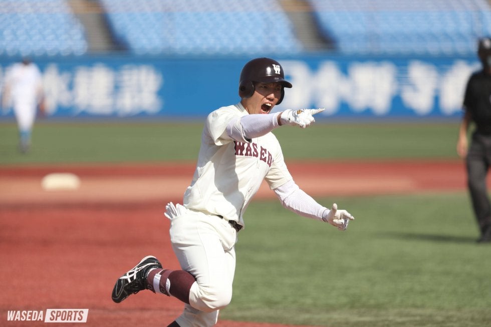 迎えた最後の秋。慶大と優勝を争い、惜しくも2位に終わったが、5位に沈んだ春からチームは明らかに成長を遂げていた。象徴的な試合となったのが明大1回戦。2点を追う9回表、2アウトから打線がつながり試合をひっくり返した。丸山自身もヒットを放ち、劇的な逆転勝利を手繰り寄せた。ベンチとスタンドが一つになり、まさに全員の執念でつかみとった1勝。丸山は「このチームで良かったなと思えた試合」と振り返った。