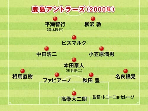 国内三冠を達成した鹿島アントラーズの2000年のフォーメーション