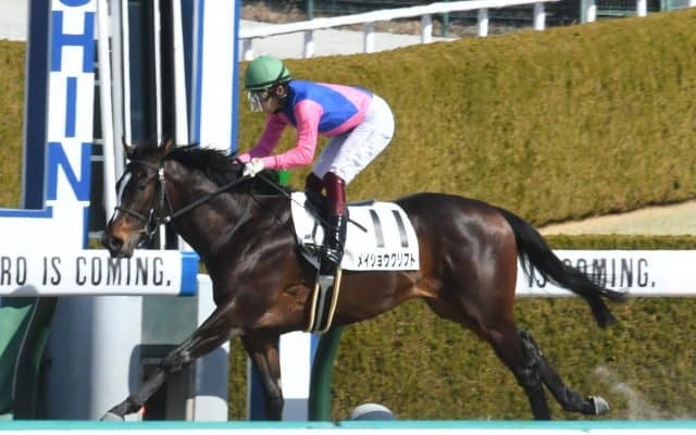 12日、阪神競馬場4Rで行われた新馬戦(3歳・ダ1200m・16頭)は、2番手に付けた福永祐一騎手騎乗の1番人気メイ…