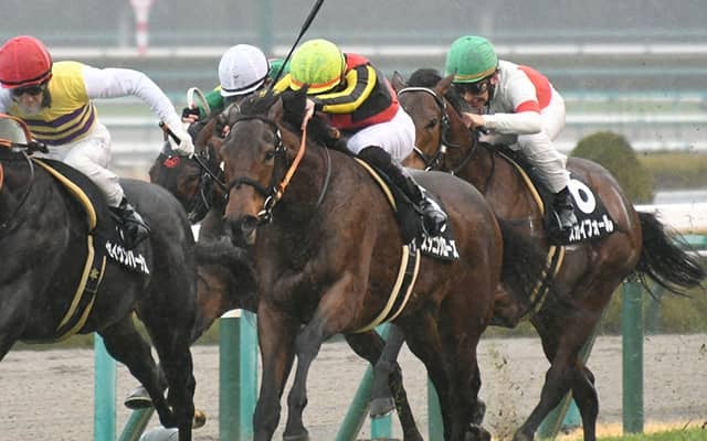 13日、阪神競馬場で行われたこぶし賞(3歳・1勝クラス・芝1600m)は、6頭立ての馬群の外でレースを進めた坂井瑠星…