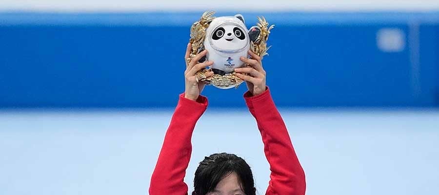 スピードスケート女子500メートルで銀メダルを獲得し、表彰台でビンドゥンドゥンを掲げる高木美帆【写真:AP】
