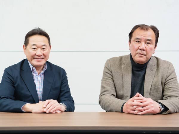 久しぶりに対面したという松木安太郎氏(左)と清水秀彦氏(右)