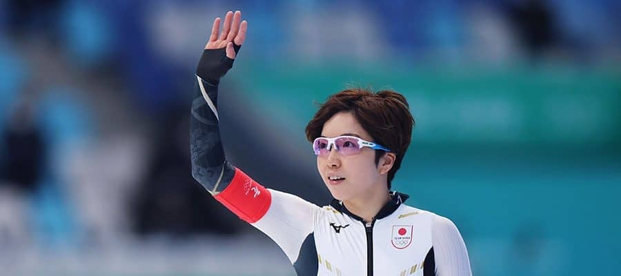 女子1000mフィニッシュ後、手を挙げて声援に応える小平奈緒【写真:Getty Images】