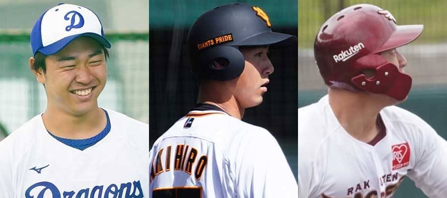 中日・高橋宏斗、巨人・秋広優人、楽天・安田悠馬(左から)【写真:荒川祐史】