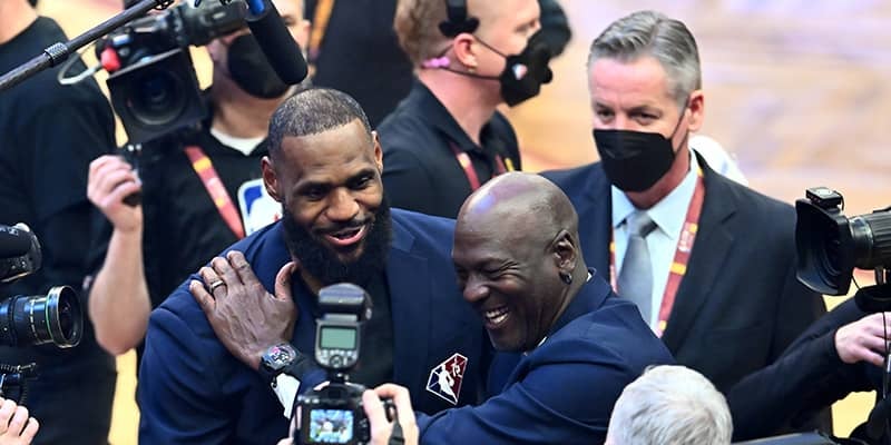 セレモニーでは、度々”GOAT(史上最も優れた選手)”で議論されるレブロンと抱擁を交わす場面も見られたジョーダン。多くのファンの間で長年白熱している話題だが、レブロンはジョーダンに心から敬意を払っているようだ。