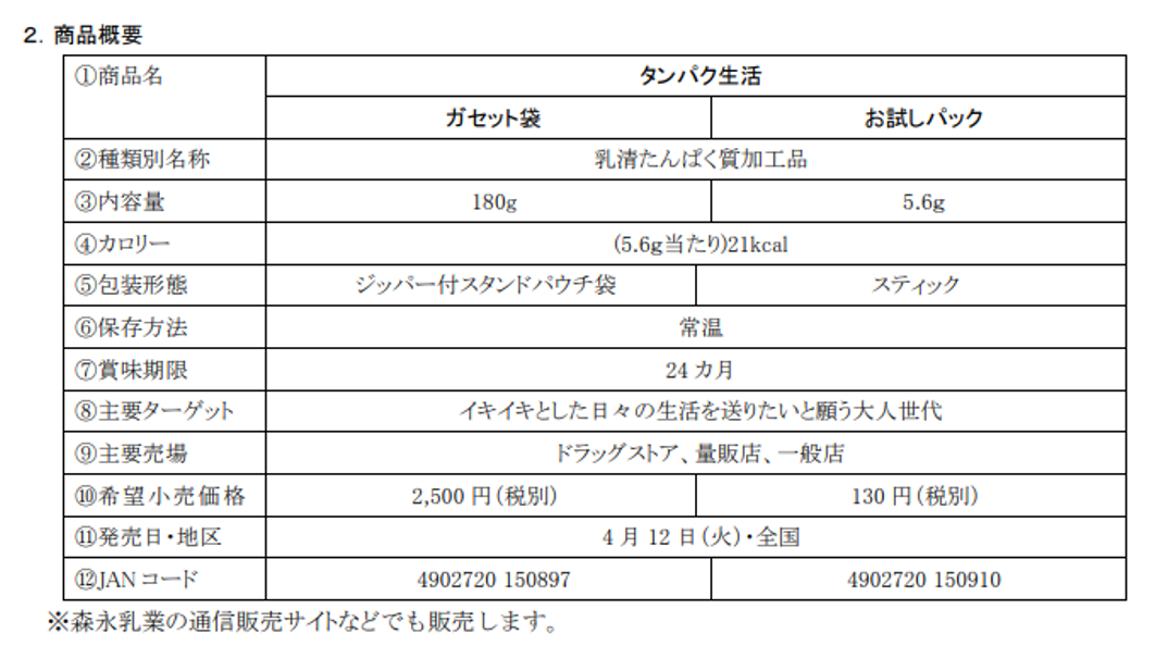森永乳業は、好みの飲み物や料理に使用できるプロテイン粉末「タンパク生活」を、4月12日(火)より全国で新発売すると発表しました。