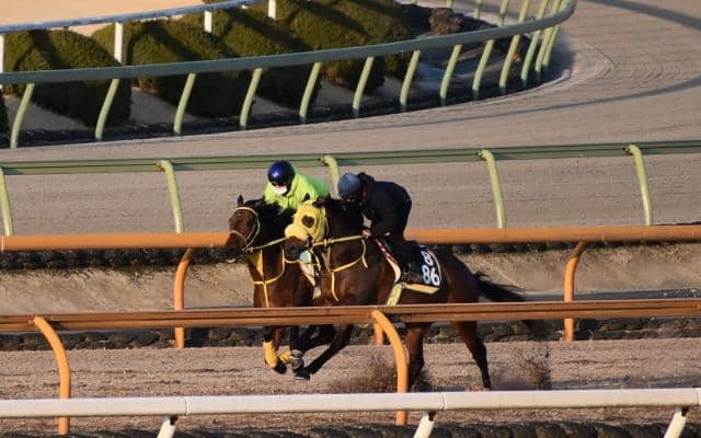 最後の直線に向いても、まだ余力があるようには見えたが、実際のラップは12.4秒から12.9秒と減速。終いだけを見てしまうと、伸びていないという印象だが、追い切り全体を見れば、ビッチリと併せて、6F79.5秒の負荷。中身の濃い追い切りだったのではないだろうか。
