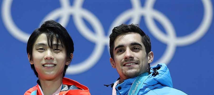 2018年の平昌五輪で互いにメダルを獲得した羽生結弦(左)とハビエル・フェルナンデス【写真:Getty Images】