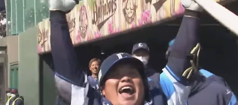 【実際の映像を見る】どっしりとした構えから……巨人岡本を彷彿とさせる西武・渡部の豪快打撃映像
