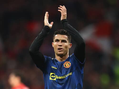 アトレティコ・マドリード戦で同点に追いつき、ホッとした表情のクリスティアーノ・ロナウド(マンチェスター・ユナイテッド)