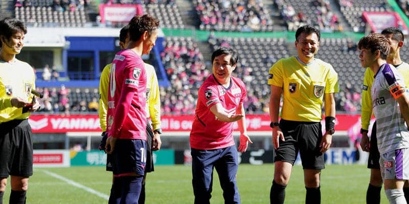 「縦に取ったらアカン」霜降り明星・せいやの“コイントス”にツッコミと笑いの声「コイン迎えに行ってる」 | サッカー