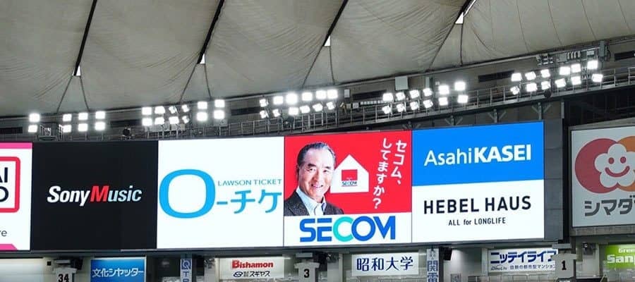 右翼席後方で巨人・長嶋茂雄終身監督が「セコム、してますか?」のメッセージとともに微笑みかけていた“名物看板”は撤去されたが、心配ご無用。平常時にはデジタル広告となってメインビジョンに表示される。