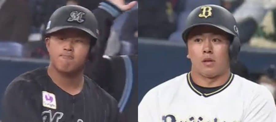 ロッテ・松川虎生(左)、オリックス・池田陵真【画像:パーソル パ・リーグTV】