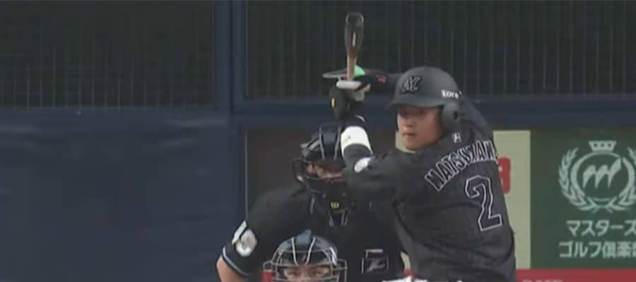 【動画】「幕張の城島」「センスしかない」 ロッテ・ドラ1松川が左手1本で放った左前打