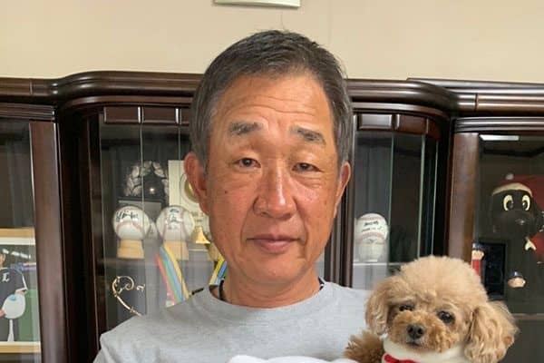 愛犬とともにベルーナ公式キャラクターの「べるーにゃ」を抱える西武・辻発彦監督【写真:球団提供】