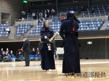 進学先を早稲田にしたのは、自主性を重んじ、「自分たちで決める」というスタンスの早大剣道部に惹かれたためだ。早大剣道部には、全国大会に頻繁に出場するような部員からそうでないような部員まで幅広く在籍しており、やはりその中で部員たちが意識しているのは、「チームとして頑張る」ということであり、そこに深い感慨を受ける。1年生の頃から早大剣道部のレギュラーとして活躍し、順調な大学での剣道生活を送っていたのも束の間、コロナによる制約が大きな障壁として立ちはだかる。練習が満足にできないような状況が続き、やりきれない気持ちはあったものの、ここでも意識したのはミーティングなどを通して、意識的にコミュニケーションをとることだった。対話を通じて、お互いにモチベーションを高め、大変な状況を助け合って生き抜いた。