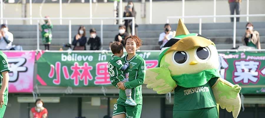 長男を抱え、入場する日テレ・東京ヴェルディベレーザの岩清水梓【写真:(C)TOKYO VERDY】