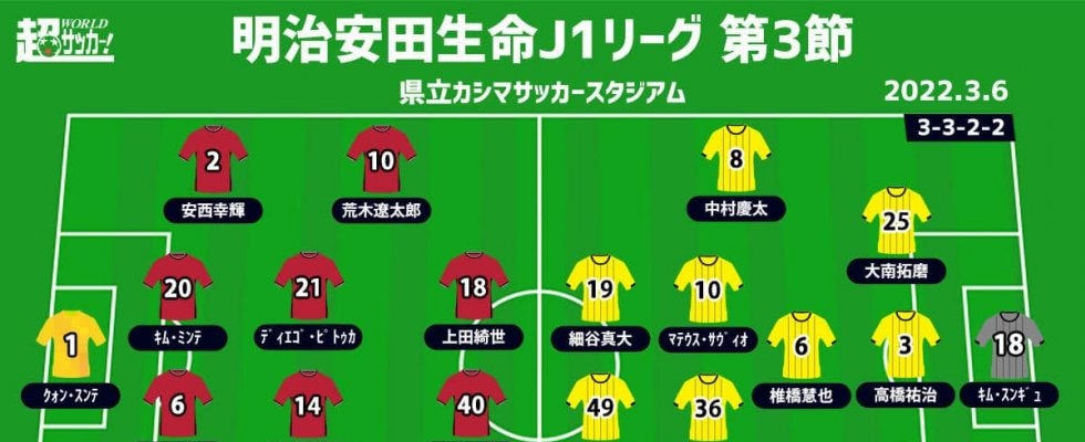 【明治安田生命J1リーグ第3節】 2022年3月6日(日) 15:00キックオフ 鹿島アントラーズ(8位/3pt) vs…