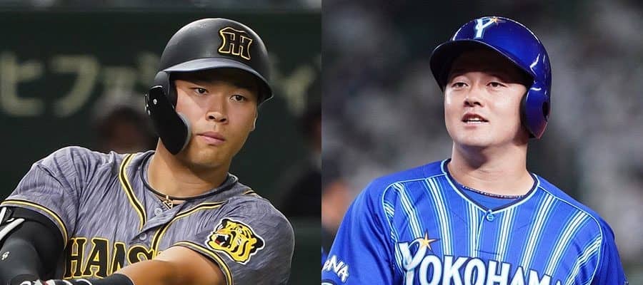 阪神・佐藤輝明(左)とDeNA・牧秀悟【写真:荒川祐史】