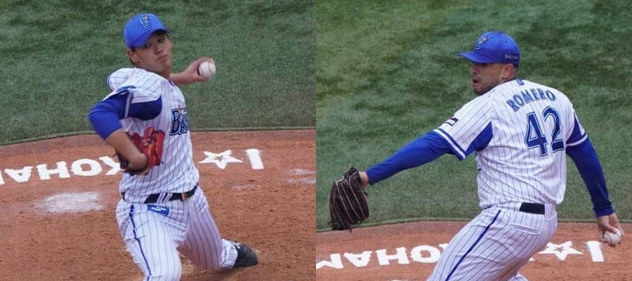 西武戦で好投したDeNA・坂本裕哉(左)とフェルナンド・ロメロ【写真:宮脇広久】
