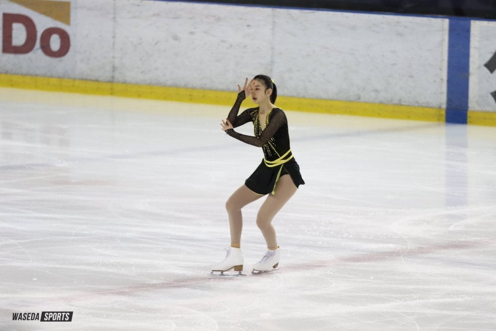 続いて登場したのは女子Dクラス部門の土屋凜菜(国教3=東京・頌栄女学院)。冒頭、幅のあるアクセルジャンプを成功させる。しかし、その後の単独ジャンプではミスが出た。終盤のコンビネーションジャンプでは立て直し、スピード感のある滑りを見せたものの、精細を欠いた演技となった。今大会の一週間前にスケート靴のブレードを変えた影響で調整不足だったという土屋。「6分間練習から調子が悪く、それを引きずってしまった」と今大会の演技を振り返った。それでも前向きな姿勢を見せ、次週のWASEDA ON ICEに向けて「もっと良い演技をできるように頑張りたい」と意気込んだ。
