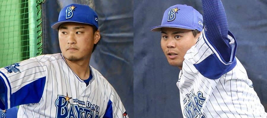DeNA・石田健大(左)と浜口遥大【写真:小谷真弥】