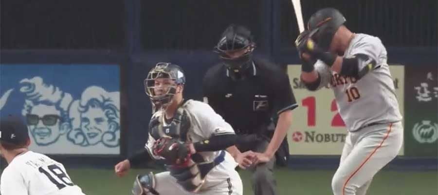 巨人・中田翔から三振を奪ったオリックス・山本由伸(手前)【画像:パーソル パ・リーグTV】