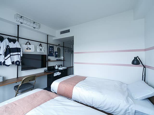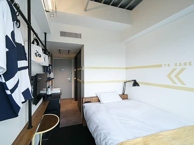 客室は、競輪開催中に選手も宿泊する「コンパクトダブル」。客室内機能はコンパクトに抑えつつ、過ごしやすさを詰め込んだダブルルームがメインとなります。バンク側の「バンクビュー コンパクトダブル」は、バンクを望む大パノラマ。ライブ感たっぷりにレースをお楽しみいただけます。