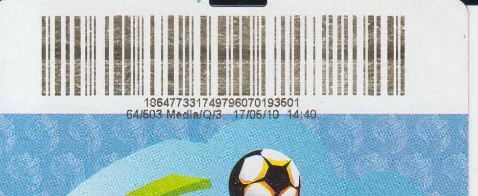 南アフリカW杯決勝戦の入場券 提供/後藤健生