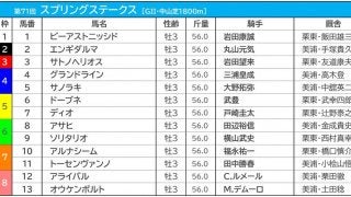 第71回・スプリングS(GII、芝1800m)の枠順が18日、発表された。東スポ…
