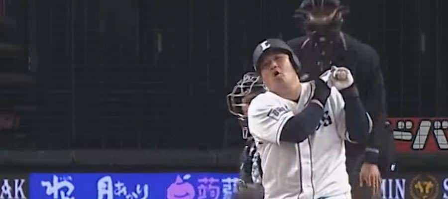 ヤクルト・奥川恭伸の変化球に西武・中村剛也も驚き【画像:パーソル パ・リーグTV】